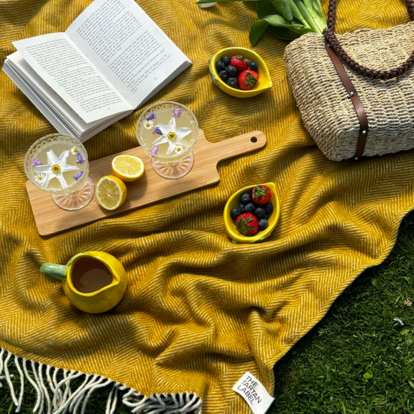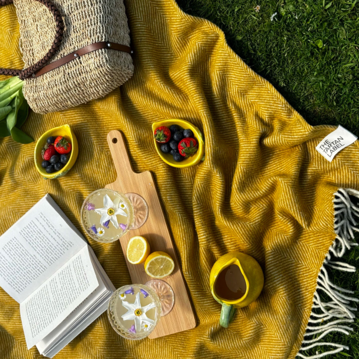 Introducing our sky recycled wool tartan blanket – a stunning blend of beauty and functionality. This luxurious herringbone picnic blanket, complete with convenient carry straps, is your must-have companion for any adventure. It's playful herringbone design adds a touch of charm to every moment, while the water-resistant lining ensures practicality and durability. This blanket is as stylish as it is resilient. Whether spread over golden sands or tufted grass, it transforms into an irresistible cushion for hours of well-deserved relaxation. So, surrender to the warmth of glorious sunshine and the caress of a balmy breeze.